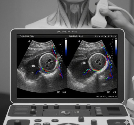 La ecografía tiroidea es un estudio no invasivo que permite evaluar la glándula tiroides, analizando su tamaño, forma, estructura y la presencia de nódulos u otras alteraciones. Es una herramienta fundamental para el diagnóstico, control y seguimiento de las enfermedades tiroideas.